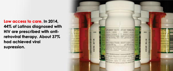 As the largest minority group in the U.S., Hispanics are disproportionately affected by HIV/AIDS. In 2013, Hispanics comprised 17% of the U.S. population or 54 million people,[1] yet represented 23% of the HIV/AIDS cases that same year.[2] In 2013, there were an estimated 5,773 cases of AIDS diagnosed among Hispanics/Latinos in the US. Since the beggining of the epidemic, approximately 125,051 Latinos died from AIDS.